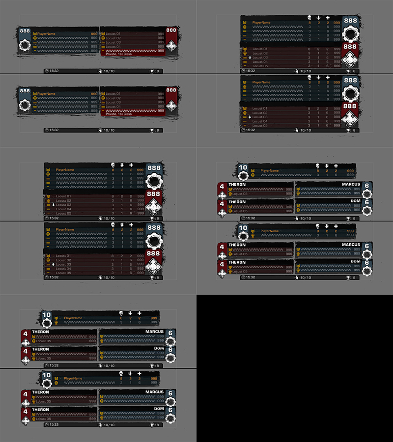 The crosshairs below were designed to display the function of the gun, and inform the player of the current state of the weapon. Various weapons had alt-charge mechanics (1st, 2nd, 4th image below), some were very basic (3rd, the Flak Cannon). These were one of my favorite and challenging parts of the project. The Crosshairs had to be designed to match the feel of the weapon, and also had to animate in such a way that was informative without being too distracting. The crosshairs were designed in Photoshop, and animated in After Effects. Every weapon (12 total) in the game had their own custom crosshair with animating states for primary fire, alt fire, secondary function, and reloads, selected my favorites to show here. The crosshairs below are for the: Bio Rifle & Grenade Launcher, Dual Enforcers, Flak Cannon, Nakhti Pistols, and Sniper Rifle. |