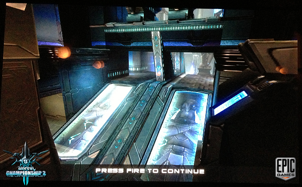 Unreal Championship 2 was my first title shipped at Epic Games. I feel super lucky to have UC2 as my first shipped title, the team we had at Scion Studios was absolutely incredible and I am extremely grateful of the guys who took a chance on the goofy looking college kid amongst seasoned industry vets, and welcomed me as a part of the team. UC2 is an amazing game that unfortunately was a little too late in the Xbox cycle, and too early for Xbox 360. I highly recommend playing it, its a fast paced, jumpy, crazy 3rd/1st person hardcore type shooter. Check out this awesome youtube video if you're unfamiliar with the game, this youtube user has very nice things to say. We had a small team working on this game, I was able to wear many hats, and learn and gain experience in may areas outside my comfort zone. I created a set of tiling wall, floor, trim, and deco environment textures for the high tech Egyptian environments, as well as textures for a majority of the meshes throughout the levels. I was also responsible for the UI, created layouts based on initial concept art, animated the UI, captured and edited video for weapon, character, and map portraits, created character portraits - lit/paint-touch up models(textures by Lee Dotson and Kendall Tucker), HUD design, and animated crosshairs. I was also involved with our cinematics, in doing After Effects motion graphics/design in post for the news room shots and other misc shots, as well as creating the news-room environment background (512 video texture of 128x128 gameplay videos on rotating tv meshes). Apologies for the super crappy camera-phone photos of the levels, the game is fairly old and had a hard time finding good screenshots of the levels, and was unsuccessful in getting the old build running. Unreal Championship 2: The Liandri Conflict was released on the Xbox. |